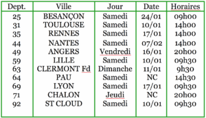 Pensez à consulter régulièrement ce tableau, des changements de dernière minute pouvant se produire. Merci de votre compréhension.