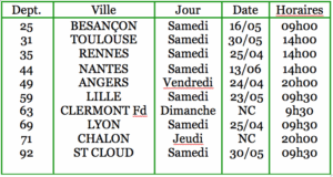 Vous trouverez ci-après le calendrier des prochains GREP, par département.